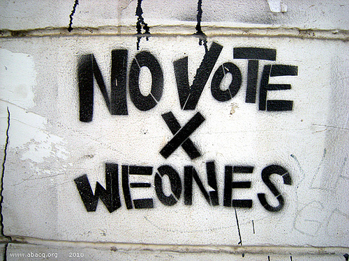 A propósito, escribo la palabra «webadas» ya que hay una foto en el post que la utiliza… Al respecto, pienso que la frase de la foto procura decir que la gente weona es la que vota por weones, porque, .. difícilmente la gente inteligente votaría por weones, si acaso pueden sopesar efectivamente su grado particular de aweona’o…