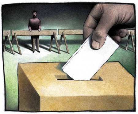 Imagen: Man behind barricades watching someone else vote (Stock Illustration Source – McClatchy – Tribune)