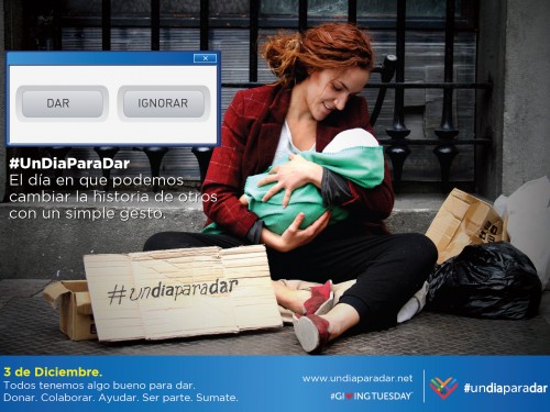 Valoramos la inspiración humanitaria de la campaña “Un día para dar” que se desarrollará en nuestro país y en muchos países del mundo el 3 de diciembre próximo. Pero su imagen y sus mensajes están muy distantes de la forma en cómo entendemos la solidaridad y el compromiso social con las diferentes formas de desigualdad que existen en el mundo y en Chile en particular. También percibo que los imaginarios de familia, de genotipos y situaciones de generosidad que incluye la campaña son muy restringidos, homogéneos y distantes de las diversas realidades que vivimos y de las múltiples prácticas de solidaridad que gestionamos.