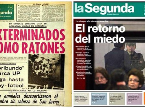 En el caso del vespertino de la cadena de El Mercurio, se entendió como un intento de infundir temor desmedido entre la población, más allá de los hechos, llevando incluso a la ciudadanía a ligar el mencionado titular con acciones y portadas de un pasado del cual La Segunda no debiera sentirse particularmente orgullosa. En el del ex Canal del Angelito, por la forzada vinculación de la legítima organización anti sistémica de grupos estudiantiles con el artefacto explosivo que dejó 14 heridos.