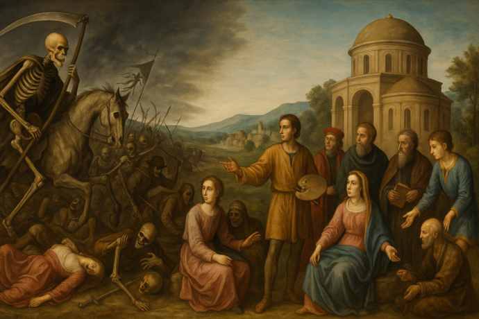 En El triunfo de la muerte (1562), Pieter Brueghel el Viejo retrata con sobrecogedora crudeza el azote de la peste, símbolo del poder omnímodo de la muerte sobre la vida. Aquella escena evoca una Europa medieval sumida en el feudalismo, la segmentación política y en una cosmovisión religiosa absolutista que sofocó el desarrollo científico y cultural durante mil años, lo que se ha denominado el oscurantismo.