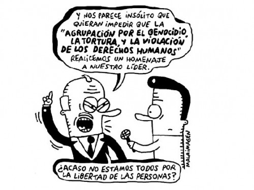 Hay actos que, individual y colectivamente, tenemos el deber de intentar impedir. Entre ellos la violación a los derechos humanos y el homenaje a los violadores a los derechos humanos. Es un imperativo moral, vital. Por las víctimas, que somos todos los ciudadanos de este país construido por el horror. Porque hay cosas que no se pueden reproducir mediante la educación. Entre ellas la discriminación y la impunidad. Porque usted es libre de pensar que es necesario torturar o discriminar. Usted es libre de pensar la homosexualidad como enfermedad. Pero no puede ser libre de hacer de ello un proyecto educativo, y usted deja de ser libre si tortura o discrimina. Usted ha cometido un crimen grave. Se ha convertido en una amenaza para la libertad. Su libertad es un incentivo para volver a destruir la libertad de otros. No es justa,no es democrática, no es tolerable la celebración de sus crímenes.