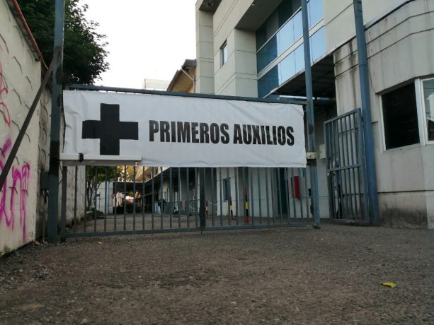 Y es que, desde el inicio del “estallido social” del mes de octubre, el recinto universitario se transformó en un centro de primeros auxilios liderado por los propios estudiantes de las carreras de salud de la UFRO, atendiendo a cientos de lesionados de diversa consideración que ha dejado el actuar de Carabineros en las manifestaciones. Así, de manera voluntaria e incluso a costa de exponer su propia integridad, el equipo conformado por estudiantes de medicina, pero también de enfermería, kinesiología, terapia ocupacional, obstetricia y psicología de esta y otras casas de estudio de la región, se asignan turnos de 8 o 12 horas ininterrumpidas para dividirse el trabajo en dos niveles: están los que están en la “primera línea” de los enfrentamientos, que premunidos de cascos, delantales e improvisados escudos con cruces rojas pintadas en el centro, son la primera asistencia a los heridos, los que, dependiendo de la gravedad de las lesiones, son trasladados al interior de la universidad, en donde son mejor evaluados, se extraen perdigones, se aplican vendajes y, cuando los casos son más graves, se derivan a la urgencia del Hospital Regional de Temuco, que se encuentra al frente. Todo esto esto, además, acompañado de médicos egresados que destinan sus horas libres como voluntarios y voluntarias.